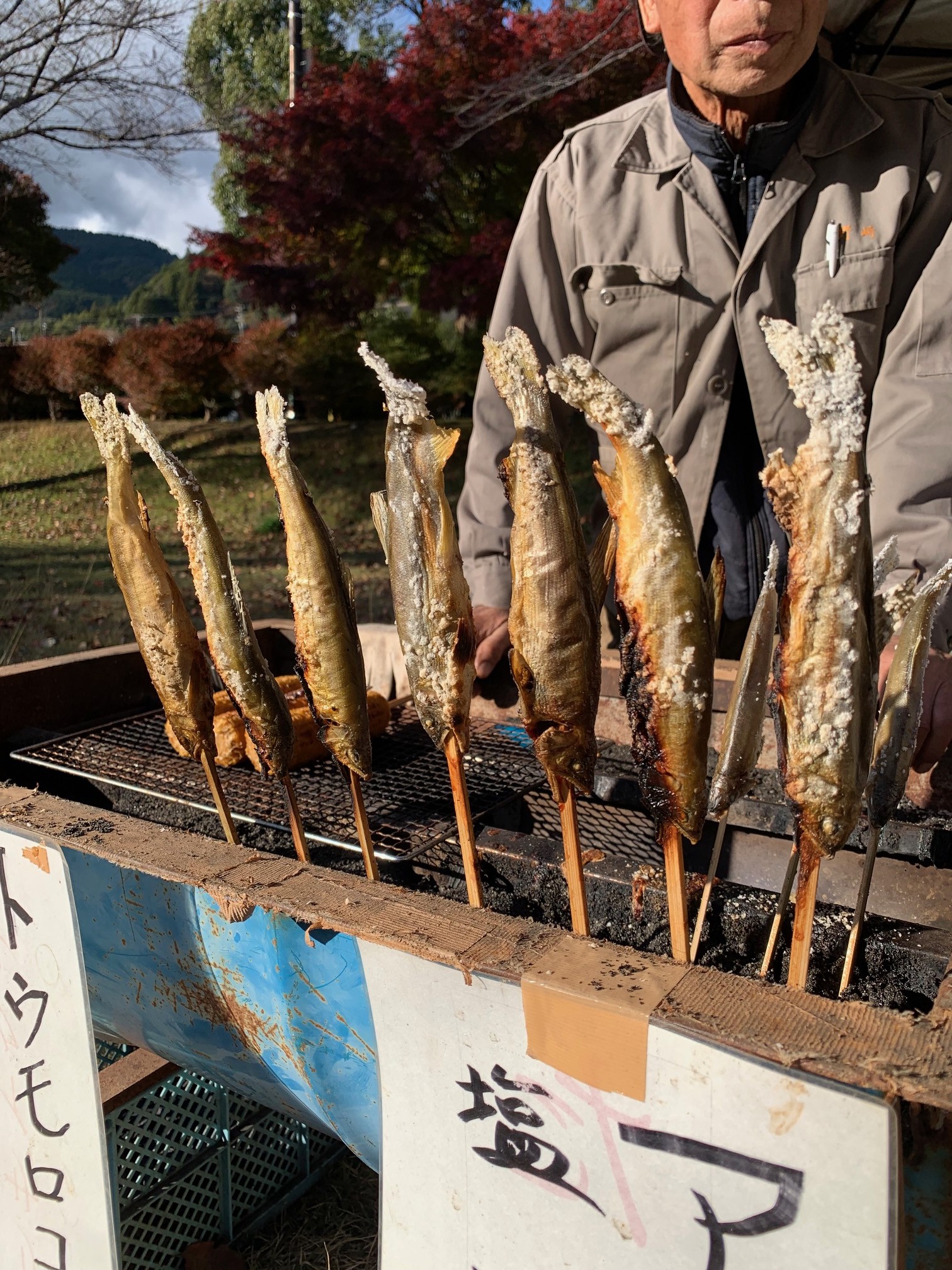 【menu】アユ塩焼き、モロコシ焼、焼き芋、コーヒー、ジュース