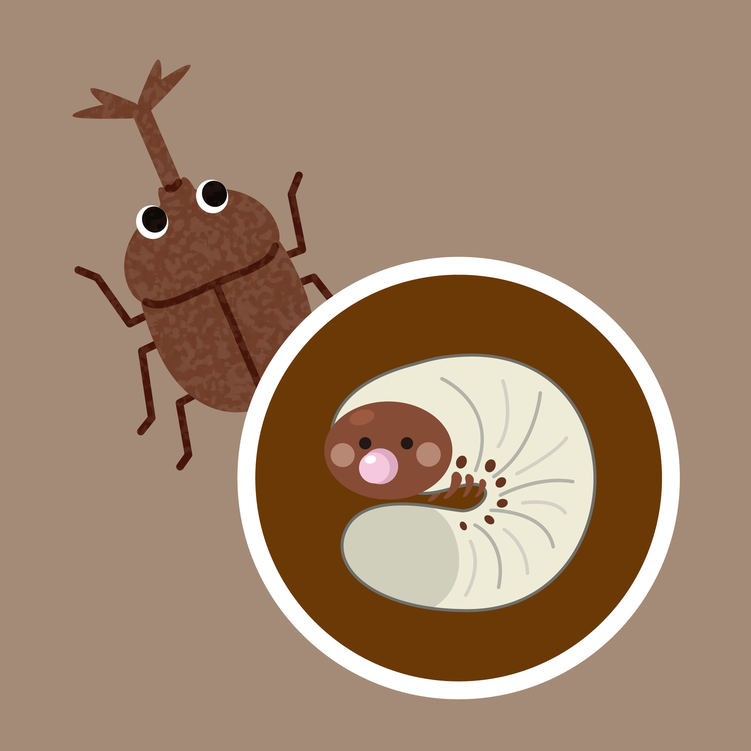 土の中にいるカブトムシの幼虫を見たことあるかな?