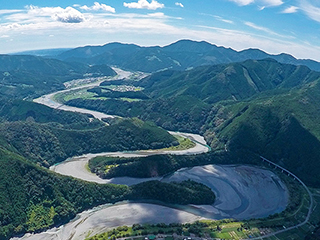 TEL: 0547-59-2746(観光協会) 約4キロにわたり大きく蛇行する大井川。この蛇行はしわのように隆...